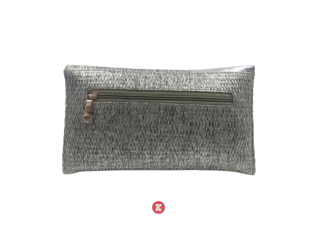 This bag features a textured metallic finish accented with a handcrafted gemstone and chain embellishment. Perfect for adding a touch of luxe to your evening.