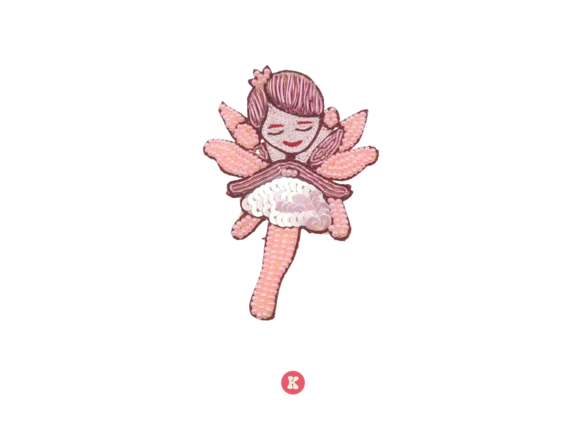 Charming fairy design crafted with pink beads, sequins, and embroidery, radiating a whimsical and delicate vibe. Perfect for kids' clothing, fairy-tale themed crafts.