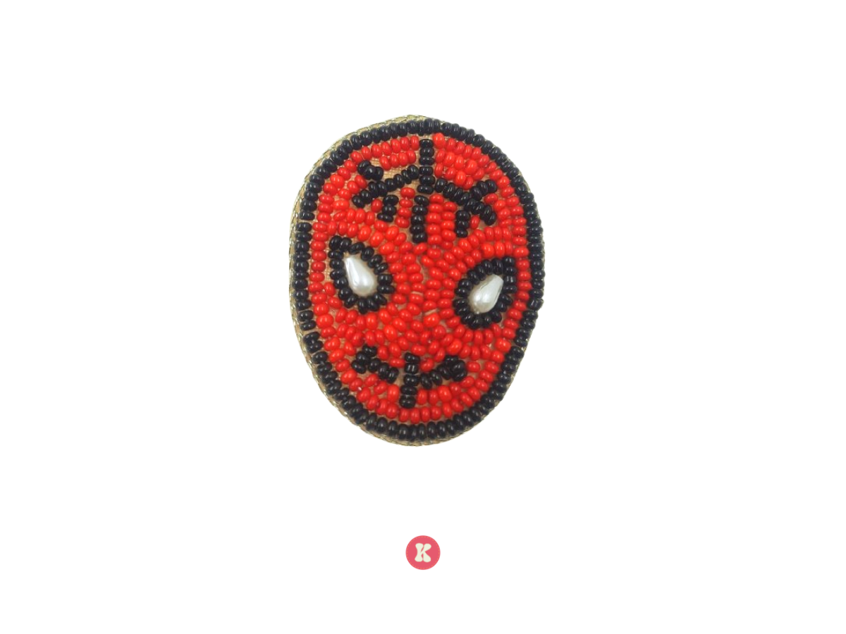 This vibrant patch showcases a mask design made with red, black, and pearl beads, inspired by tribal or theatrical motifs. It's commonly used for customizing jackets, hats.