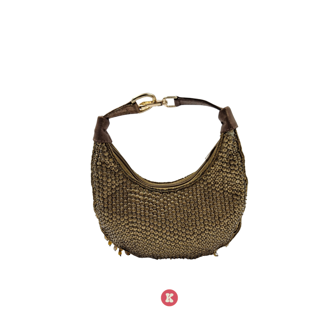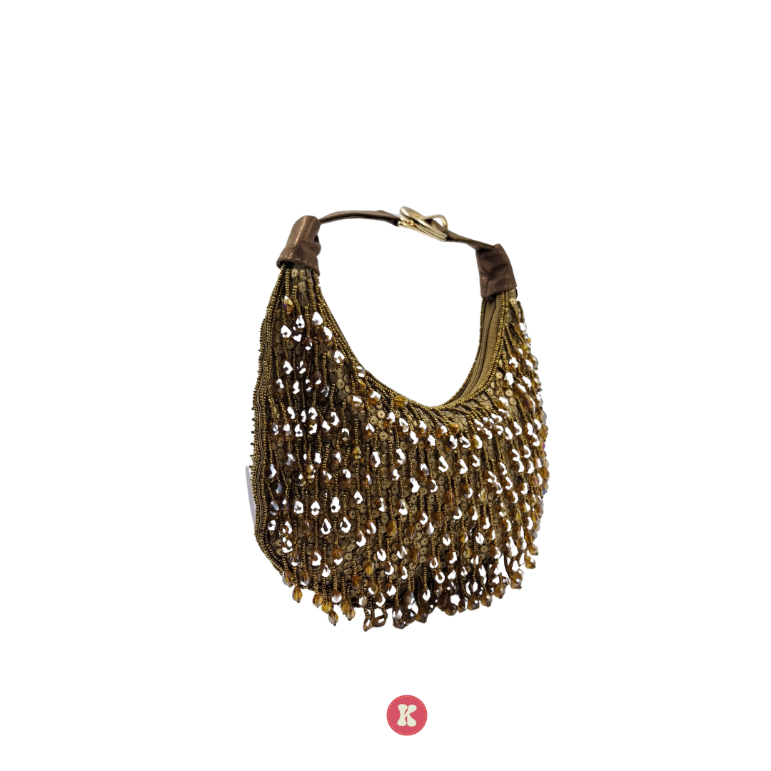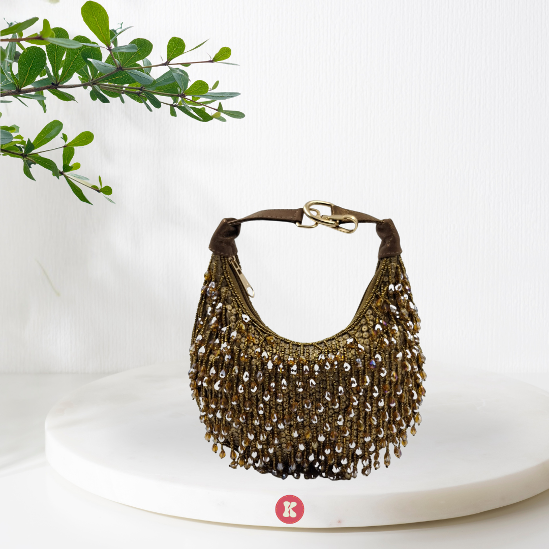 Sparkling amber beaded hobo bag that radiates festive charm with every shimmer.